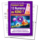 - Jeu Keno pour 13 numéros sur des grilles de 10 numéros. Super Garantie: 100% 8/8. Tout proche de l’objectif Gains à Vie.12.65 €