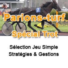 Les abonnés à Parions-turf ne connaissent pas la crise! Ces pronostics sont donnés dans les tiercés de trot tout au long de l´année. Il s´agit d'un seul cheval à jouer au jeu simple placé. Les Jeux sont proposés pour une mise de base de 1 unité et à masse égale (pas de gestion, toujours la même mise) vous pouvez augmenter la mise de base selon le bénéfice que vous souhaitez réaliser en fonction de votre budget.