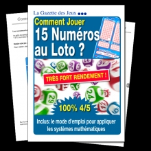 Découvrez avec ce système une approche différente pour jouer 15 numéros au loto. En effet, contrairement à de nombreux systèmes réducteurs celui-ci favorise le très haut rendement. Il faut bien comprendre qu’avec cette formule on recherche en premier lieu le rang de gains à 4 bons numéros. Pour obtenir une grille à 4 bons numéros, vous devez avoir les 5 numéros du tirage dans votre sélection de 15 numéros. C’est tout! Évidemment, lorsque les 5 numéros du tirage figurent dans votre jeu, vous pouvez bien sûr aussi avoir une grille à 5 bons numéros, synonyme de très gros gains. Et ce n’est pas tout: ce système à fort rendement vous donnera également de multiples grilles gagnantes à 2 et 3 bons numéros. Un petit plus non négligeable. Il ne faut pas oublier que vous pouvez doubler ou tripler les combinaisons gagnantes si par chance vous avez le numéro Chance de juste.