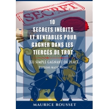 - Bravo et merci pour avoir édité l'ebook 10 secrets inédits et rentables pour gagner dans les tiercé de trot. Depuis sa mise en vente aucun écart et des rapports qui font monter le capital. Merci encore pour nous aider au maximum pour gagner au jeu simple dans les tierces de trot. P.G. (95).