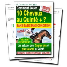 Ce système quinté 10 chevaux a été conçu spécialement pour des courses vraiment difficiles. C’est pour cette raison que son développement est sans base et sans aucune condition. Il faut dire que rien n’est plus frustrant que de s’interdire de jouer pour cause de course compliquée. Et c’est justement lors d’épreuves difficiles que les rapports explosent. Vous remarquerez vite que ce système quinté à tout prévu. Tout d’abord, il est très facile à appliquer, sur 10 tickets seulement. Ensuite, il intègre l’option de jeu flexi et donc est très économique. Enfin, son rendement est très intéressant: jusqu’à 21 combinaisons gagnantes avec les 3 premiers chevaux de l’arrivée dans sa sélection.Toutes les informations techniques et pratiques pour vos quintés!